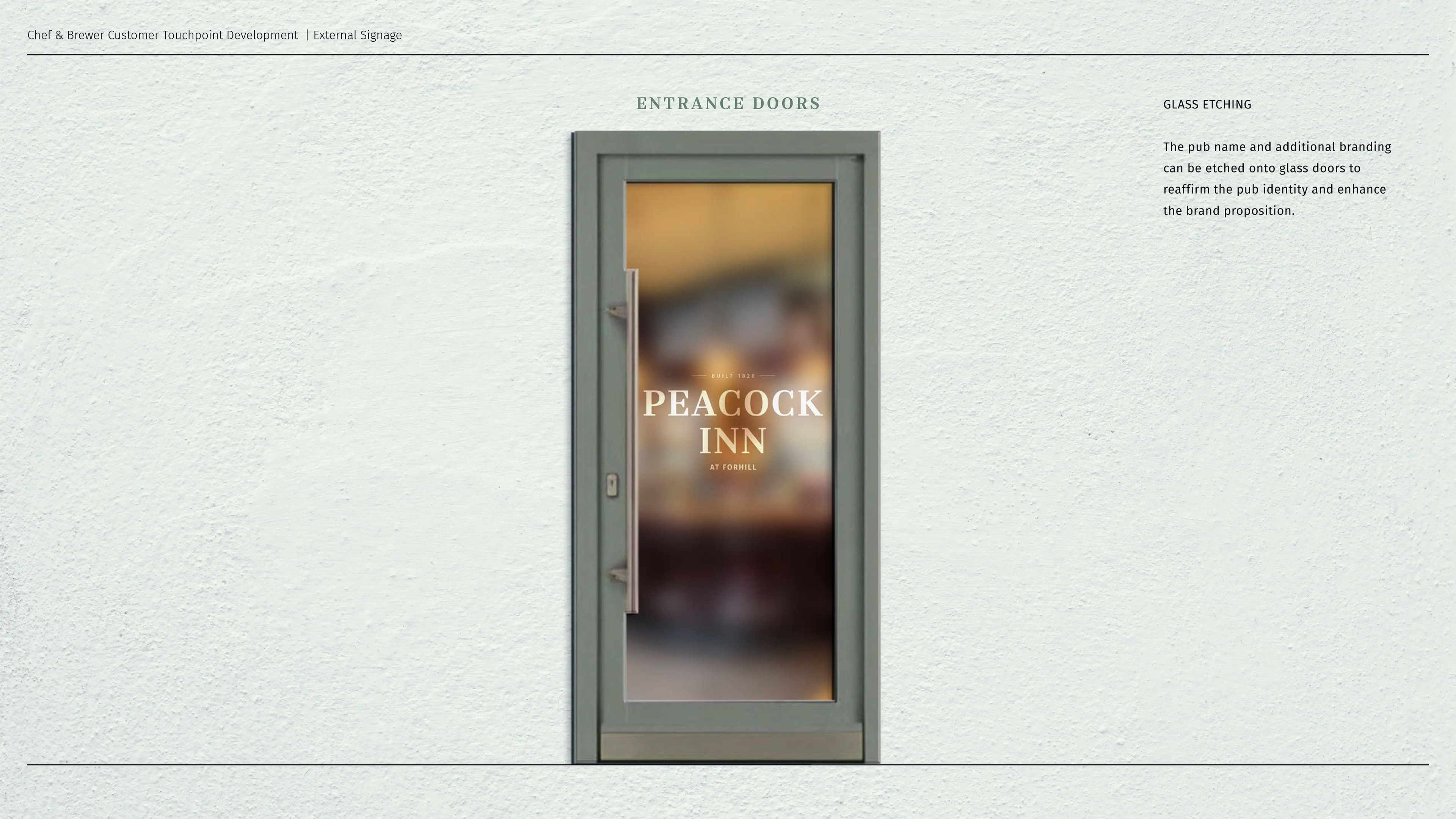 Whilst working at Keane Brands, I was asked to assist with a brand refresh of Chef & Brewer's pub collection. This required development of their graphical assets - colour palettes, fonts and styles, but the most interesting part was designing their signage. From the external walls of the buildings to the internal wayfinding, I designed and visualised examples to sell in the concept. Watercolours were sourced and adapted into a cohesive suite.